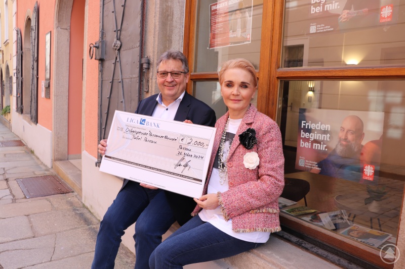 Das Netzwerk Passauer Runde unterstützt deshalb die Caritas Passauer Tafel seit vielen Jahren. So durfte sich jetzt Passaus Caritasvorstand Diakon Konrad Niederländer über einen 2000 Euro-Scheck freuen, der von Netzwerk-Initiatorin Claudia Gugger-Bessinger überreicht wurde: „Es ist mir wie immer eine Herzensangelegenheit mit meinen Freunden der „Passauer Runde“ der Passauer Tafel auch heuer wieder zu Ostern eine Freude bereiten zu können!“ Mit Blick auf die vielen Krisenherde der Welt, sieht Gugger-Bessinger die Spende auch als symbolischen Akt: „Ostern steht ja für die Auferstehung, für den Aufbruch und die Hoffnung auf Gutes. Unsere große Hoffnung ist, dass die Kriege in der Ukraine und in Israel beendet werden, und die zahlreichen Menschen, vor allem auch die Geflüchteten, endlich wieder in Frieden leben können. Ein großer Dank an die Tafel, die mit ihren Ehrenamtlichen großartige Hilfe leistet; für Menschen, die auf Unterstützung tatsächlich angewiesen sind.“