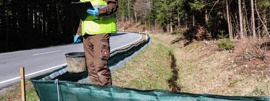 „Ungewöhnlich milde Temperaturen und sehr wenig Schnee haben dazu geführt, dass wir mit unseren Maßnahmen in diesem Jahr rund zwei Wochen früher dran sind als normal“, erklärt Jochen Linner, der stellvertretende Leiter des Sachgebietes Naturschutz und Forschung in der Nationalparkverwaltung. „Insgesamt haben unsere Mitarbeiter dieses Jahr wieder rund vier Kilometer Amphibienschutzzäune entlang der Nationalparkstraße, bei Neuhütte, Bergerau, Zwieslerwaldhaus und im Reschbachtal aufgebaut.“ Damit soll verhindert werden, dass zahlreiche Kröten, Frösche und Molche Opfer des Straßenverkehrs werden. Stattdessen werden die Tiere in hinter dem Zaun vergrabenen Eimern gesammelt und von Freiwilligen und Nationalparkmitarbeitern sicher über die Straße gebracht.