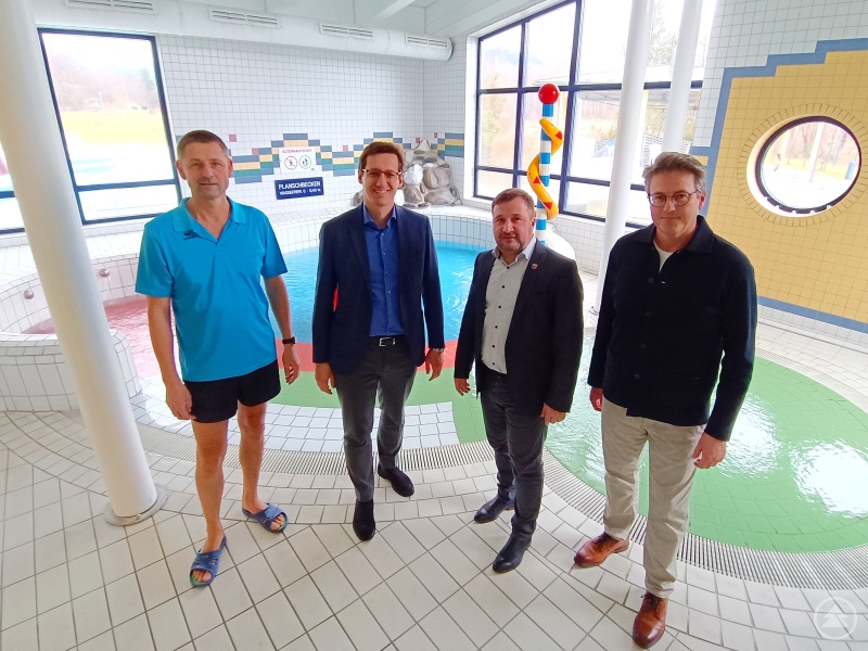 Das im Jahr 1969 erbaute Zwieseler Erholungsbad (ZEB) erfüllt eine zentrale Funktion im Freizeit- und Sportangebot der Stadt Zwiesel sowie der gesamten Region. Damit das auch in Zukunft so bleibt, sind jedoch größere Investitionen zur Sanierung des Bades notwendig. Im Rahmen einer Ortsbesichtigung machte sich MdL Dr. Stefan Ebner gemeinsam mit Bürgermeister Karl-Heinz Eppinger und Werkleiter Andreas Schuster ein Bild der Lage und diskutierte über mögliche Förderoptionen.