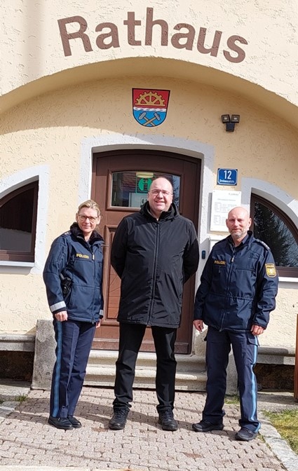PORin Ingrid Grötzinger und PHK Georg Binder stellten Bgm. Roland Schraml den Sicherheitsbericht vor.