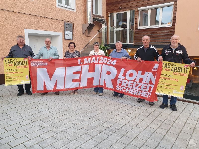 Der Deutsche Gewerkschaftsbund (DGB) Kreisverband Freyung-Grafenau ruft für den 1. Mai 2024 auf zur Maikundgebung der Gewerkschaften unter dem Motto „Mehr Lohn, mehr Freizeit, mehr Sicherheit“. Gemeinsam mit der KAB führen die Gewerkschafter um die Kreisvorsitzende Angelika Alder mit ihrem Stellvertreter Harry Höcker die Kundgebung zum Tag der Arbeit in Freyung durch.