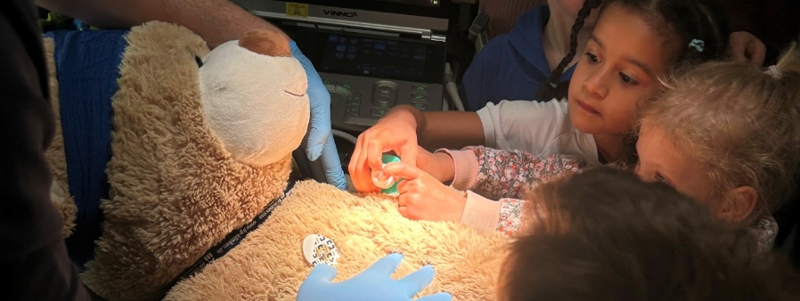 Bei der nächsten Station wurde neben einer Sonografieaufnahme auch das Nähen einer Wunde an einem Plüsch-Teddy demonstriert. Die Kinder durften hier selber mithelfen und dem Arzt assistieren. Am Schluss hatte jedes Kind die Möglichkeit, sich den Arm eingipsen zu lassen. Zur Stärkung gab es dann noch eine gesunde Obst- und Gemüseplatte vom Krankenhauskiosk für die Schulanfänger. „Es ist schön, dass unsere Kindergartenkinder die Möglichkeit haben das Krankenhaus zu besuchen. Durch den Besuch bekommen die Kinder einen Einblick in das Krankenhausgeschehen und so kann ihnen für einen möglichen Ernstfall vielleicht etwas die Angst genommen werden.“ so Frau Eder-Lenz vom Kindergarten St. Anna.