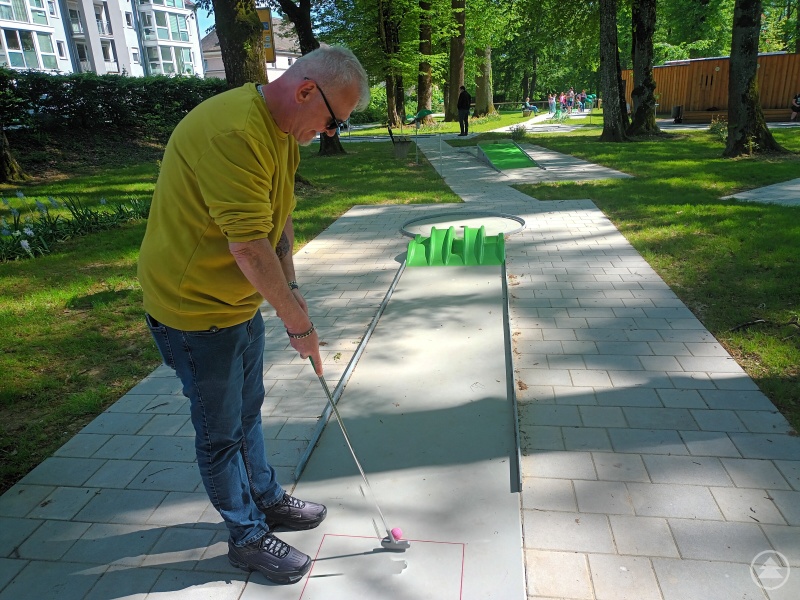 Viele Menschen kamen am sonnenverwöhnten Samstag, 04. Mai, um die 18 Bahnen der neu aufgebauten Minigolf-Anlage zu testen. Dass hier ein Freizeitspaß für jedes Alter geboten wurde, zeigte sich rasch. So waren zahlreiche kleine und große Minigolf-Fans zum Ausprobieren der Anlage angereist. Doch Obacht! Manche der Bahnen sehen leichter zu bespielen aus, als sie tatsächlich sind. Das tut der Spielfreude aber keinen Abbruch. Im Gegenteil. Für Nervenkitzel und Spannung ist so nämlich jederzeit gesorgt. Egal, ob eine geübte Minigolferin oder ein interessierter Neuling den Abschlag wagt.