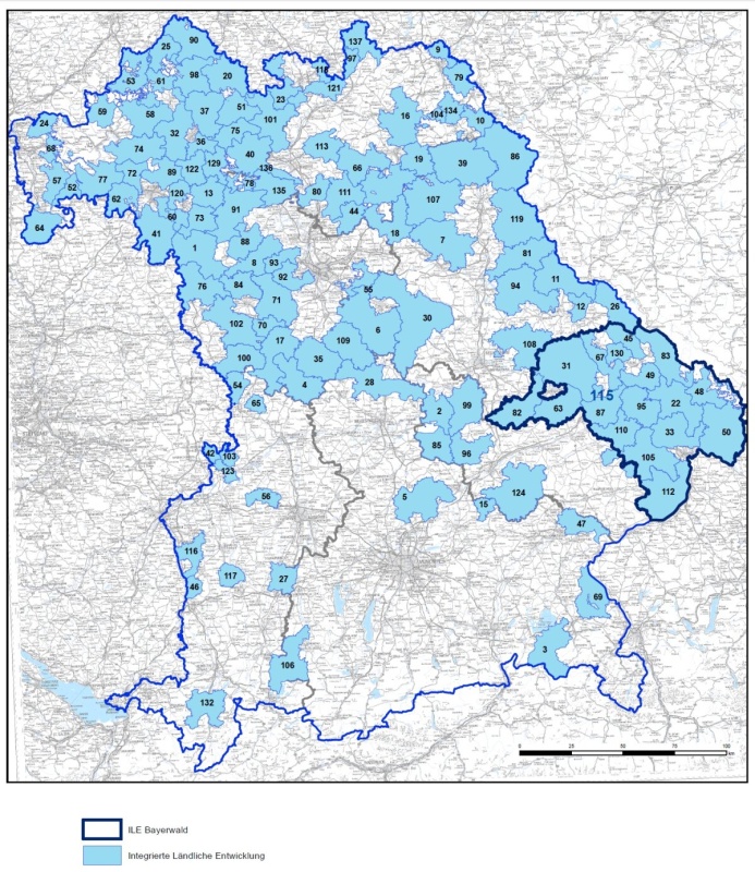 Die Integrierte Ländliche Entwicklung (ILE) ist neben der Dorferneuerung, der Flurneuordnung und verschiedenen Initiativen und Förderprogrammen eines der Schlüsselinstrumente der Bayerischen Verwaltung für Ländliche Entwicklung zur nachhaltigen und resilienten Entwicklung ländlicher Räume und zur Schaffung gleichwertiger Lebensbedingungen. Mit der ILE unterstützen und begleiten die sieben bayerischen Ämter für Ländliche Entwicklung freiwillige Zusammenschlüsse von kooperationswilligen Kommunen im ländlichen Raum.  Im Mittelpunkt steht dabei das gemeinsame Gestalten einer zukunftsorientierten und lebenswerten Region durch gemeindeübergreifende Planung und Umsetzung von Projekten, die aufgrund der immer komplexeren und sich stetig verändernden Herausforderungen nur in einem interkommunalen Zusammenschluss realisiert werden können. ILE ist bereits seit Jahren zu einem Erfolgsmodell geworden, was auch die Zahlen belegen: In Bayern arbeiten derzeit 955 Gemeinden in 124 Integrierten Ländlichen Entwicklungen zusammen (Stand 02/2024). In Niederbayern sind es aktuell 23 anerkannte und zwei in Gründung befindliche ILEs, in der sich rund dreiviertel der niederbayerischen Kommunen zusammengeschlossen haben.