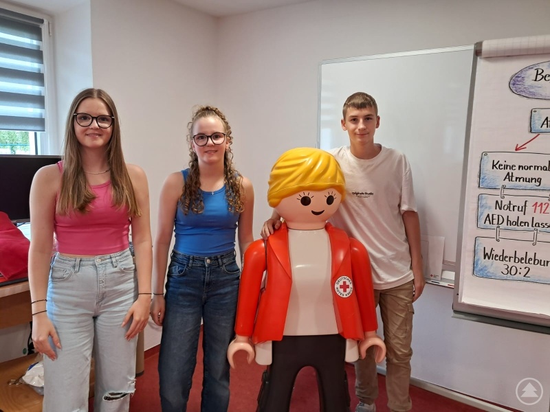 Am 08. Juni 2024 durften wir im Lehrsaal in Freyung eine besondere Gruppe von Teilnehmern in unserem Rotkreuzkurs in Erster Hilfe begrüßen: die Drillings-Geschwister Anna, Michael und Helena Naglmüller. Die drei Jugendlichen bereiten sich darauf vor, bald im Straßenverkehr mobil zu werden und nahmen daher an unserem Kurs teil, um sich für den Erwerb der Fahrerlaubnis vorzubereiten.