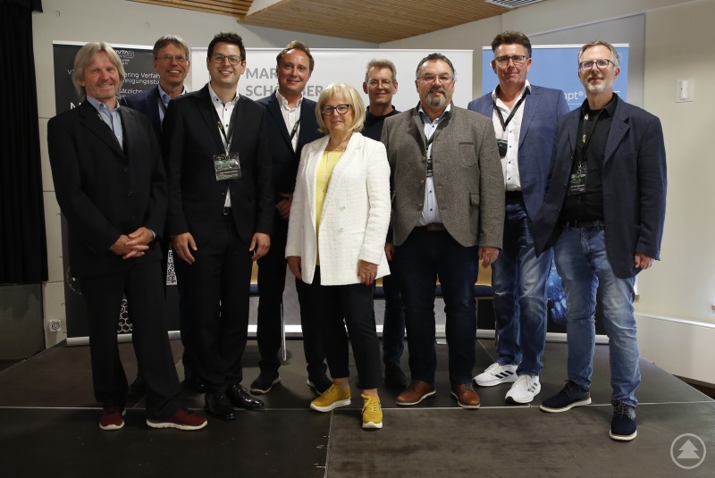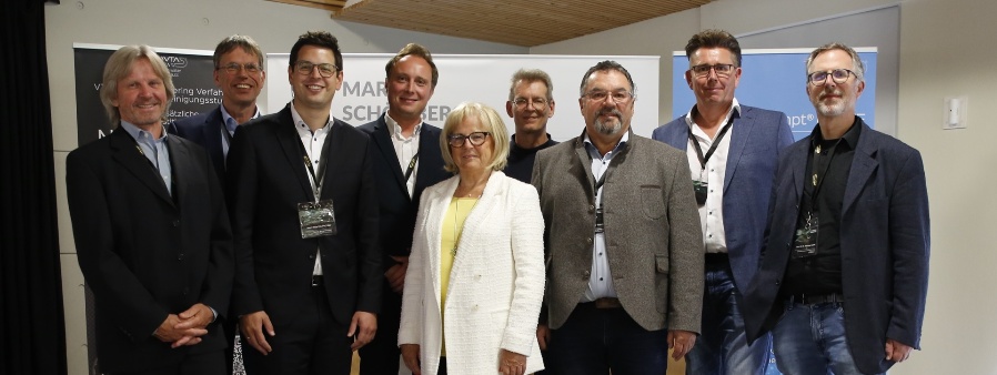 Vor einer Exkursion in die Praxis gab es im KUK in Schönberg Vorträge, Diskussionen und Gespräche. Fachleute, Organisatoren und Multiplikatoren waren unter anderem (v.l.) Prof. Dr. Raimund Brotsack von der TH Deggendorf, Dr. Andreas Lenz von den BVS München, Bürgermeister Martin Pichler, Andreas Gabriel, MSc. Institutsleiter von der Fachfirma VTA, Stellvertretende Landrätin Helga Weinberger, Dr. rer. Nat. Bertram Kuch von der Uni Stuttgart, Bürgermeister Werner Troiber, Jürgen Murr als Organisator und Fachmann vor Ort und PD Dr. Michael Seidel von der TU München.