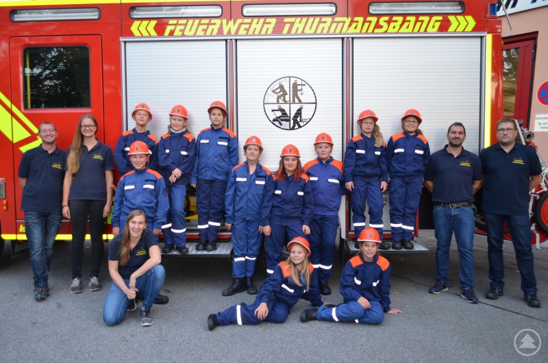 Thurmansbang. Die Werbeaktion der Feuerwehr Thurmansbang, die im Mai zu einem Schnuppernachmittag eingeladen hatte, war ausgesprochen erfolgreich. 15 Buben und Mädchen im Alter zwischen 10 und 13 Jahren sind seither mit Feuereifer bei der Jugendgruppe der Wehr. Nun ist auch ihre „Einkleidung“ mit der Jugend-Schutzausrüstung komplett und als i-Tüpferl gab’s ein Feuerwehr-T-Shirt oben drauf.