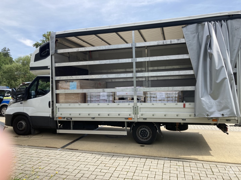 Ein wahres Schwergewicht stand am Freitag vormittags den Verkehrsspezialisten der Polizeiinspektion Freyung gegenüber. Den Beamten war ein polnischer Kleintransporter auf seinem Weg nach Tschechien aufgefallen, als er eine kaum nennenswerte Steigung buchstäblich in Schneckentempo hochkroch. Die Fahrt auf die Waage bestätigte den Verdacht der Polizisten. Der Klein-Lkw brachte statt der erlaubten 3500 kg sage und schreibe über 5600 kg auf die Waage. Mit der Überladung von mehr als 60 % handelte sich der Fahrer ein Bußgeld von fast 500 Euro ein. Auch gegen den verantwortlichen Verlader wird ermittelt. Der Transporter durfte erst weiterfahren, nachdem er einige der mit Papier beladenen Paletten auf ein anderes Fahrzeug umgeladen hatte. Die erhebliche Überladung hätte sowohl bei der Kurvenfahrt als auch bei einem Bremsmanöver schlimme Folgen nach sich ziehen können.