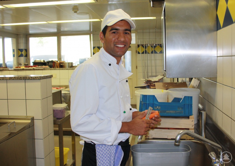 Für einen der jungen Männer ist der Ausbildungstraum nun wahr geworden: Der 18-jährige Aftab Khan lebt seit gut anderthalb Jahren in Weißenstein. Seine afghanischen Mitbewohner freuen sich jedes Mal sichtlich, wenn er den Kochlöffel schwingt - schließlich gibt es das „weltbeste Hühnchen“ nicht überall. „Für mich ist das normal“, erklärt Aftab mit einem Schulterzucken. „Wenn meine Mama früher nicht daheim oder krank war, bin ich eingesprungen.“ Zunächst machte der gebürtige Pakistani ein Praktikum in Unterried. Hier stellte sich Aftab so glänzend an, dass Hotelchef Geiger ihm im September eine Lehrstelle anbot. Seither schneidet, brutzelt und backt er als „Apprentis“ in der Lindenwirt-Gourmetküche. Aftab strahlt: „Hier zu sein ist für mich etwas ganz besonderes. Das Kochen macht großen Spaß und die Kollegen sind alle nett - und so lustig!“ Inhaberin Maria Geiger erzählt, dass bei den morgendlichen Vorbereitungen in der Küche gerne Musik gehört wird. „Unlängst waren das ganz besondere Klänge. Afghanische Musik. Wir lernen jeden Tag etwas Neues kennen.“ Auf den Umstand angesprochen, dass längst nicht jeder Arbeitgeber Asylbewerbern offen gegenübersteht, reagiert Christian Geiger verwundert: „Die Gastronomie ist eine internationalen Branche. Da ist Aufgeschlossenheit noch nicht einmal politisch motiviert. Ich war selbst eine ganze Weile im Ausland - quasi als Ausländer unter Ausländern. Jeder, der lernwillig ist, sich die Ärmel hochkrempelt und mit einem Lachen auf Menschen zugeht, ist willkommen. Menschen wie Aftab können wir immer gebrauchen.“