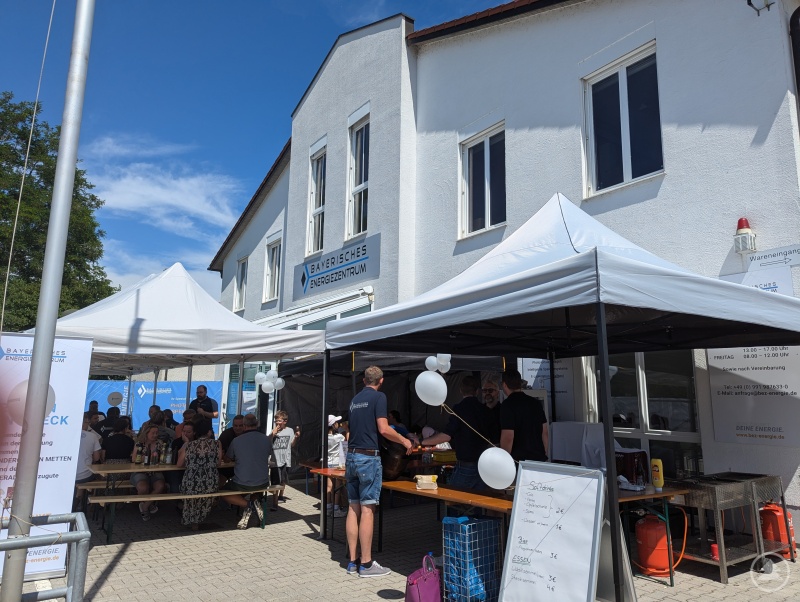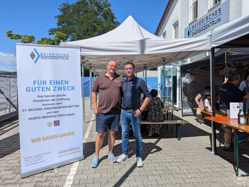 So lud das Bayerische Energiezentrum, das 2015 als Zwei-Mann-Betrieb starte und nur neun Jahre später mehr als 65 Mitarbeiter zählt, am 05. und 06. Juli zur großen Eröffnungsfeier nach Metten ein. Mit dabei: Neben vielen glücklichen Gesichtern auch eine große Hüpfburg für die kleinen Gäste, saftig brutzelndes Grillgut und eiskalte Getränke direkt vom Fass. Die Einnahmen aus diesem Verkauf kommen ebenso wie die Spenden dem St. Michael Kindergarten Metten und dem Hospitz Niederalteich zugute.
