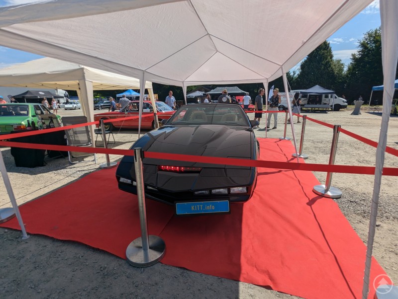 Darüber hinaus gab es neben dem spannungsgeladenen Poker-Run aber noch viele, viele weitere Attraktionen zu bestaunen. Die wertvollen Fahrzeuge wurden so zum Beispiel im Rahmen einer Ausstellung geschmackvoll in Szene gesetzt. Das heiße Sommerwetter war also nur einer der Gründe, warum die Smartphones und Spiegelreflexkameras der vielen Gäste schon früh glühten. Auch eine Oldtimer Fachmesse fand auf dem Mooser Festplatz statt, genauso wie eine Sonderausstellung mit dem Motto „Bella Italia“. Der Weg zu den gemütlichen Zuschauerbereichen lohnte sich außerdem nicht nur wegen Speis und Trank. Auch ein Ehrengast aus Hollywood, den viele sicher noch aus der Kultserie „Knight Rider“ kennen, war dort zu finden: : K.I.T.T.