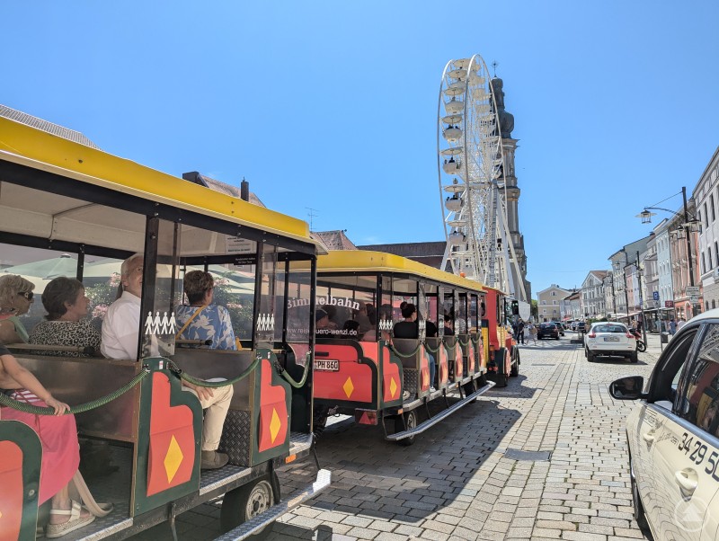 Darüber hinaus wartet die Bimmelbahn 2024 mit einer schönen Neuerung auf. Es gibt jetzt nämlich auch die sogenannten „gelben Tickets“ dafür zu kaufen. Bei ihnen handelt es sich um Fahrkarten, die für die Bimmelbahn, das „White Star“ Riesenrad am Luitpoldplatz und das vom 03. bis 10. August stehende Kinderkarussell vor der Tourist Info gelten. Wichtig zu beachten ist dabei jedoch, dass das Riesenrad acht Tage länger als die Bimmelbahn in der Stadt sein wird. Bis zum 18. August bietet es einen unvergleichlichen Blick über die Dächer Deggendorfs.