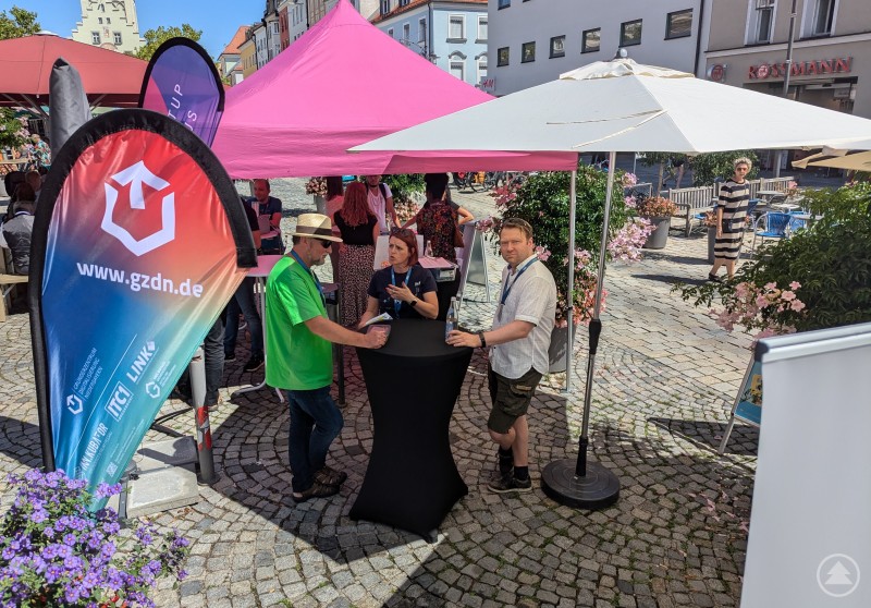 Wer sich zum Beispiel in die „Löwen-Gondel“ traute, konnte seine Geschäftsidee mit Unternehmer Thomas Wiederer besprechen. Er dürfte vielen auch aus der TV-Gründershow „Die Höhle der Löwen“ bekannt sein. Gemeinsam mit einem weiteren VIP fand dann ein vertrauliches Acht-Augen-Gespräch statt. Schon in der Vergangenheit konnte sich dieses Konzept über den Dächern Deggendorfs bewähren. Entsprechend groß war auch der Andrang an der luftigen Attraktion. Wer den Pitch als vielleicht lebensverändernde Chance ergreifen wollte, musste jedoch schnell sein. Circa zehn Minuten Zeit blieben, um mit den VIPs ins Gespräch zu kommen und die eigene Geschäftsidee vorzustellen.