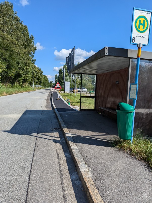 Der Gehweg zur Bushaltestelle Donauhof stadteinwärts ist fertig. Der städtische Bauhof konnte die Maßnahme in einer Woche zum Abschluss bringen. Vor allem für die Mitarbeiter der dort ansässigen Betriebe konnte so ein sicherer Anschluss geschaffen werden.