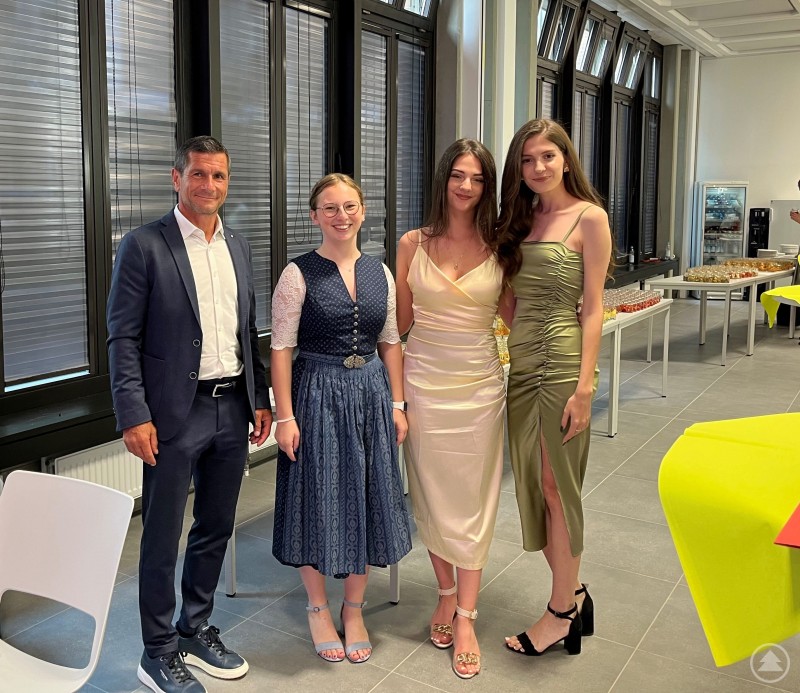 v. l. Peter Weindl (Vorsitzender der Geschäftsführung der Agentur für Arbeit Deggendorf), Leonie Anzinger, Bogdana-Adriana Henti und Elisabeth Pusch