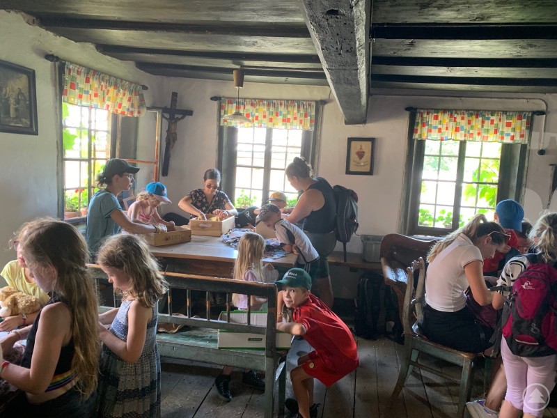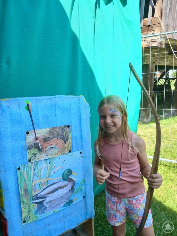 Der Kindererlebnistag in der ersten Woche der Sommerferien zog zahlreiche Familien mit Kindern an, die sich im Bogenschießen, Basteln und alten Spielen versuchen wollten.