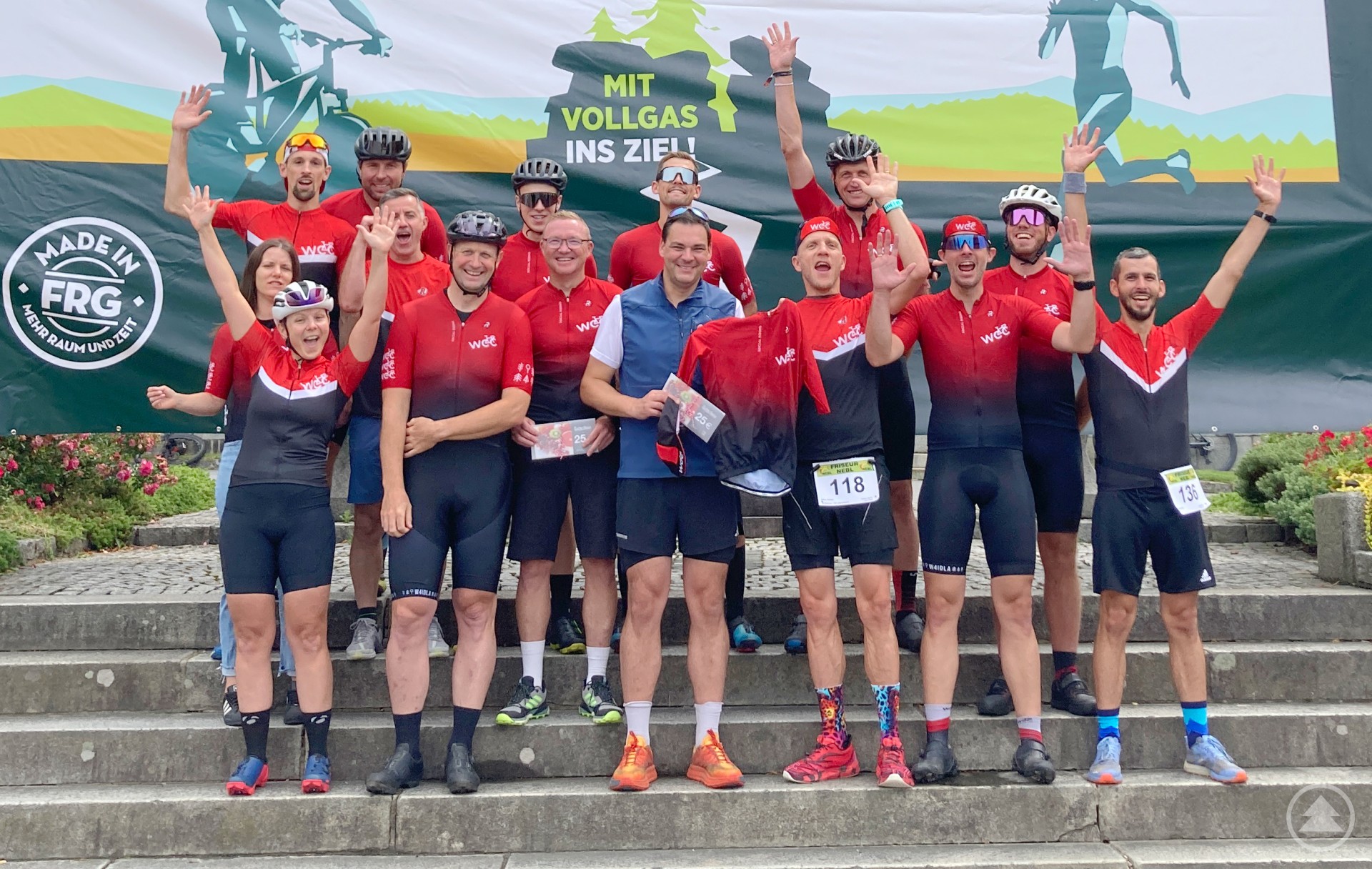 Die Gewinnerteams „Single-Speed“ und der „W4idla Cycling Club“ mit dem frisch ernannten Ehrenmitglied Landrat Sebastian Gruber (Mitte) freuen sich über ihre Bestleistungen beim diesjährigen Stadtradeln.