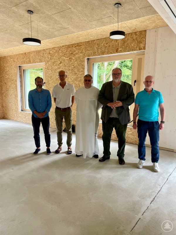 Vor Kurzem hat sich Oberbürgermeister Jürgen Dupper persönlich vor Ort ein Bild vom Fortschritt der Arbeiten für die neue Kindertagesstätte in der Innstadt gemacht. Gemeinsam mit Baureferent Wolfgang Seiderer, dem Leiter des Amtes für Kinder, Jugend und Familie Alois Kriegl, dem verantwortlichen Architekten Alexander Mitschelen und Pater Jakob, welcher den Träger, die Pfarrkirchenstiftung, vertritt,