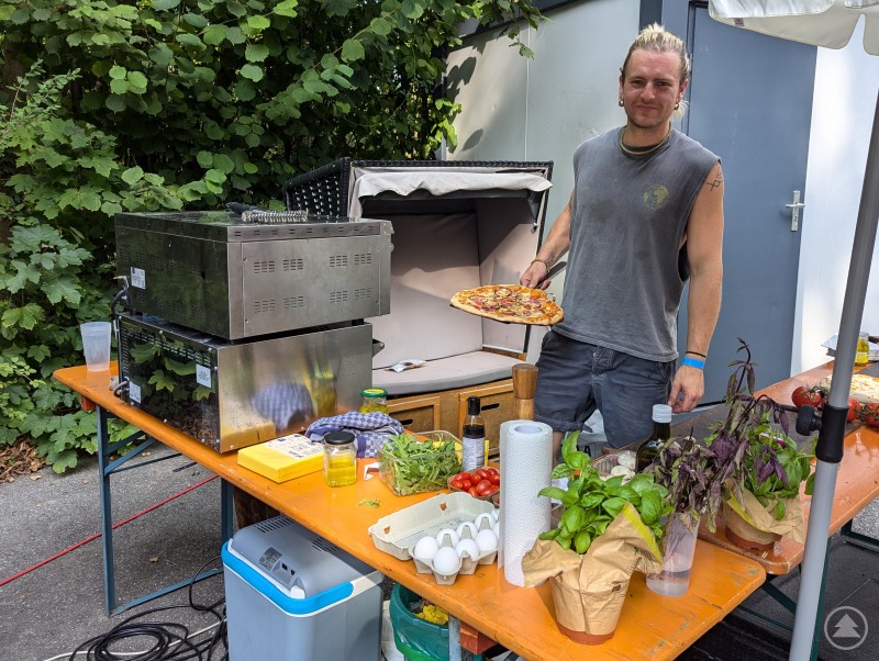 Mit von der Partie waren aber nicht nur die DJs Aerix, Jack Davis, Patrick Luwak und Marius, die die Stimmung auf der Kulturlichtung zum Kochen brachten. Auch ein Pizza-Bäcker versorgte die vielen Gäste mit köstlichen Genüssen. Er bereitete seine Kreationen live in einem extra mitgebrachten Pizzaofen zu. Die Besucherinnen und Besucher des 12-stündigen Electro Festivals konnten sich also jederzeit eine knusprige Stärkung am Stand abholen. Und dieses Angebot wurde bereits am frühen Nachmittag gut und gerne angenommen.