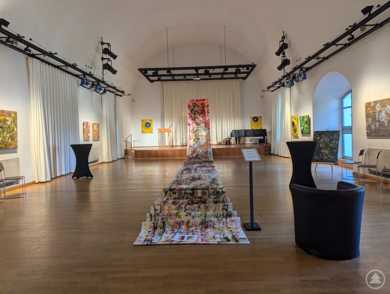 Das Mitglied des Deggendorfer Kunstvereins ließ es sich also nicht nehmen, seine Gäste persönlich zu begrüßen. Manche von ihnen durften sich sogar über einen gemeinsamen Rundgang freuen. Und andere schauten dem Kreativen bei der Fertigstellung einer Auftragsarbeit über die Schultern. Das verlieh der Ausstellung eine zusätzliche Tiefe. Mehr noch: Viele Werke erhielten durch die Anekdoten des Künstlers eine ungeahnte Wendung. Ein Paradebeispiel dafür gab es im Obergeschoss des Deggendorfer Kapuzinerstadls zu bestaunen.