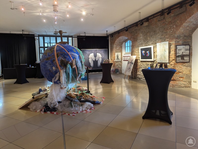 Geschickt platzierte Robert Weber seine Kunst über zwei Stockwerke im Kapuzinerstadl. Dabei wirkte jedes Exponat mit einem unverkennbaren Charme. Die zentrale Installation im Erdgeschoss etwa zog bereits auf den ersten Metern der Ausstellung die Aufmerksamkeit auf sich. Das Müllproblem unserer Zeit war hier das Thema. Unweit der ehemaligen Gebrauchsgegenstände fand sich dann ein unschuldiges Paar Engelsflügel als Kontrastprogramm. Dieses Bild war laut Aussage des Künstlers ein echter Fotomagnet für Selfie-Fans. Näher an die Kunst kommen viele selten. Das war aber nicht der einzige Grund für die Nahbarkeit der Ausstellung. Schließlich war Robert Weber stets vor Ort.