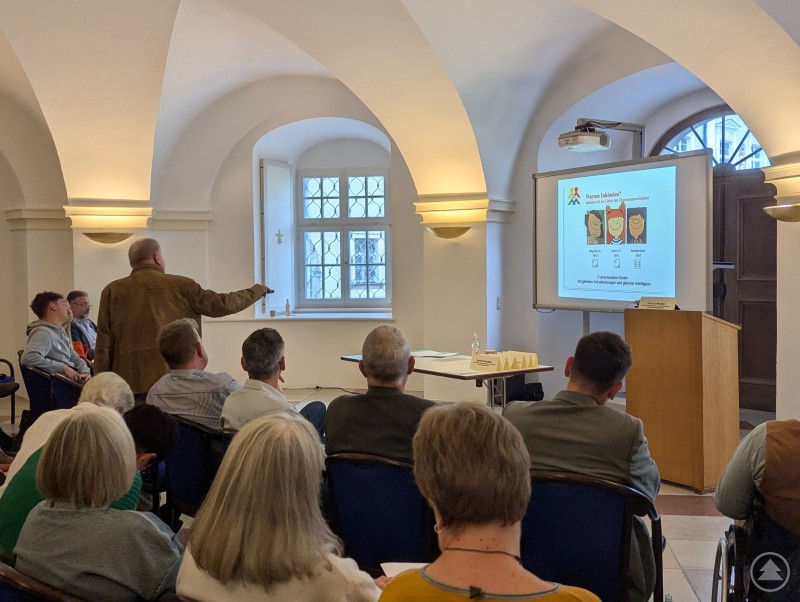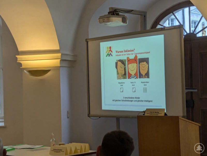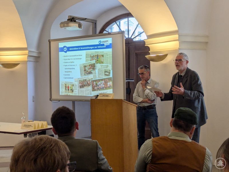 Gut gestärkt führten Wolfgang Geier und Volker Kuppler ab circa 13:00 Uhr in den Samstag-Nachmittag. Herr Geier ist der 1. Vorsitzende der Lebenshilfe Deggendorf e. V. und Herr Kuppler ihr Geschäftsführer. Beide stellten die Lebenshilfe Deggendorf vor und berichteten u. a. darüber, welche Möglichkeiten die Einrichtung für Menschen mit Handicap bietet. An Prof. Dr. Wocken war es nun, die informative Vortragsrunde zu beenden. Als letzter Redner des Tages stellte der 2008 emeritierte Professor für Lernbehinderten- und Integrationspädagogik aus Hamburg die Frage „Inklusion - warum?“ Diese beantwortete er ebenso scharfsinnig wie gefühlvoll.