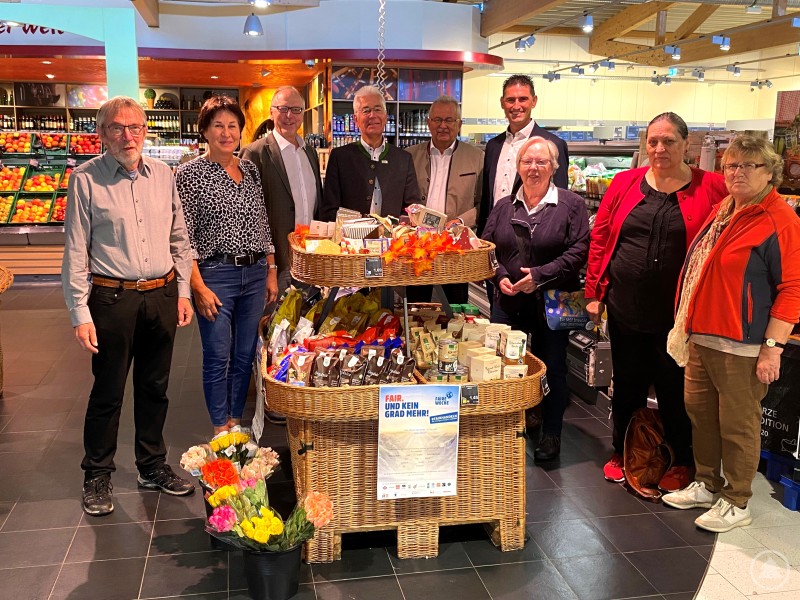 Seit Jahren sind die EDEKA-Märkte Stadler & Honner – und EDEKA allgemein – ein Vorreiter in Sachen Fairtrade-Produkte. Entsprechend besuchte die Fairtrade-Steuerungsgruppe des Landkreises angesichts der Fairen Woche 2024 den EDEKA-Markt Stadler & Honner in Mitterfels. Mit dabei war auch der gemeinsame Pate von Stadt und Landkreis der Fairen Woche 2024, Dr. Bernhard Widmann, und der Mitterfelser Bürgermeister Andreas Liebl.