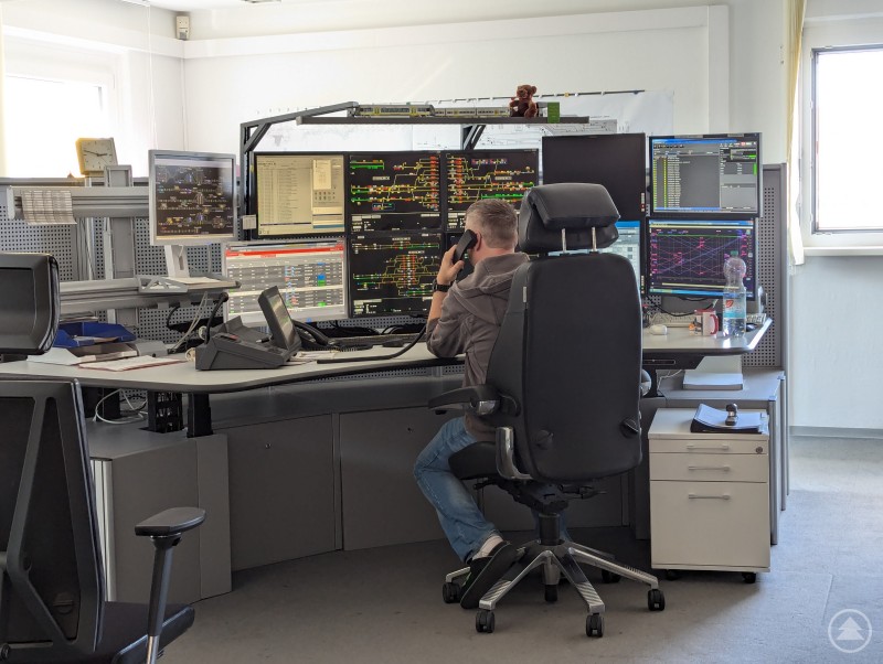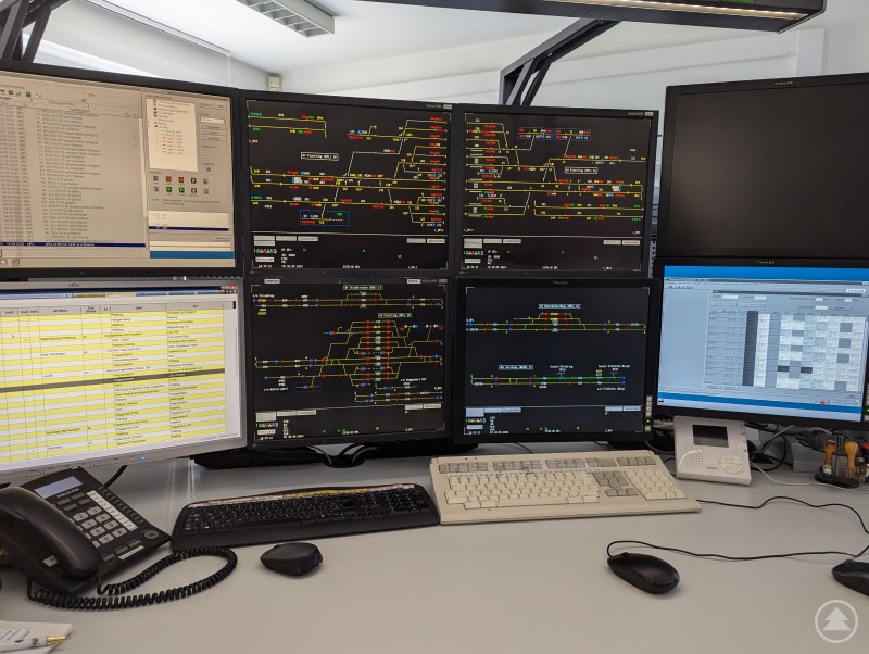 Im elektronischen Stellwerk beeindruckten unzählige Computerbildschirme, über die der Bahnverkehr überwacht werden kann. Die Ein- und Ausfahrt der Züge wird dabei automatisch auf die Bildschirme übertragen. Das erfolgt über klar festgelegte Signale. Wer genau hinschaute, konnte die Bewegung auf den Gleisen dadurch sogar in Echtzeit verfolgen. Für einen möglichst reibungslosen Bahnverkehr braucht es aber nicht nur absolut verlässliche Geräte, Programme oder die Fahrdienstvorschrift 408. Das Stellwerk muss auch jederzeit mit erfahrenem Personal besetzt sein. Und damit die Belegschaft optimal arbeiten kann, gibt es dort jeden Rechner nicht nur einmal, sondern dreimal. Erst, wenn zwei der drei Rechner ausfallen, entsteht eine Stellwerkstörung.