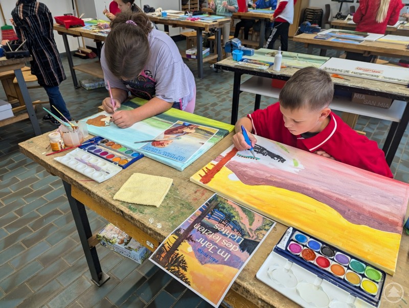 Auch die Grundschule Mauth wird am sich am Programm des Eröffnungstags beteiligen. So übt Kreisheimatpfleger Karl-Heinz Reimeier schon fleißig mit den Schülern der Kombiklasse 2./3. an einem Lied, während die 4. Klasse mit Museumsbegleiterin Andrea Schuster-Haselberger und Museumspädagogin Julia Herzig an einem Kunstprojekt arbeiten, das auch am Eröffnungstag zu bestaunen sein wird.