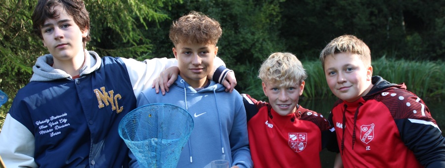 Direkt am Teich gingen die Jugendlichen schließlich auf Entdeckungsjagd und konnten vielfältige Lebewesen entdecken, wie beispielsweise den Wasserläufer oder verschieden Molcharten, die dann anhand von Bestimmungsbüchern näher untersucht wurden, bevor sie wieder in die Freiheit entlassen werden konnten.