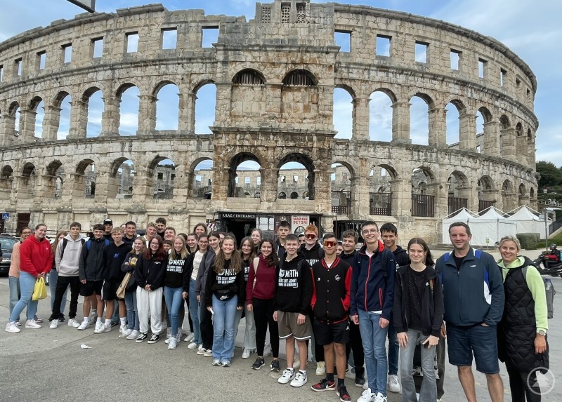 Die Grafenauer Realschüler der Klassen 10a und 10c genossen ihre Abschlussfahrt nach Kroatien unter anderem vor dem Amphitheater in Pula.