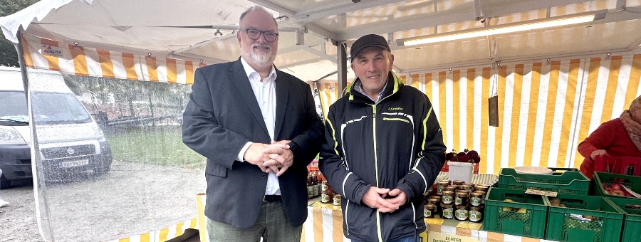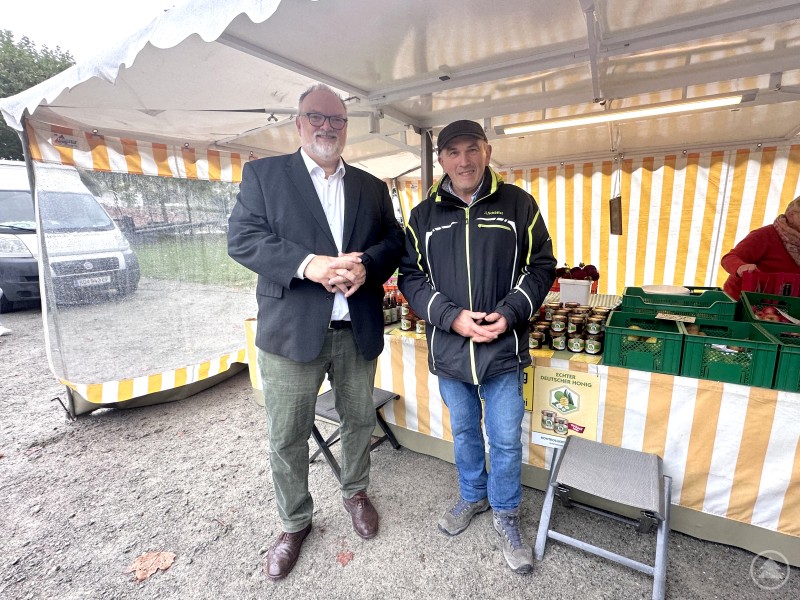 Für Stammkunden und den anderen Standlern hat der Jubilar heute feierlich angerichtet, mit selbstgemachten Torten und Kaffee. Auch Oberbürgermeister Jürgen Dupper ließ es sich nicht nehmen, persönlich am Stand vorbeizuschauen: „Wir sind stolz, jemanden wie Herrn Kern auf unserem Wochenmarkt zu haben. Nicht nur die regionalen Produkte, sondern auch das Wissen, das er an die Besucher gerne weitergibt, ist von unschätzbarem Wert. Ich hoffe, dass ich Sie noch viele Jahre hier antreffen werde.“
