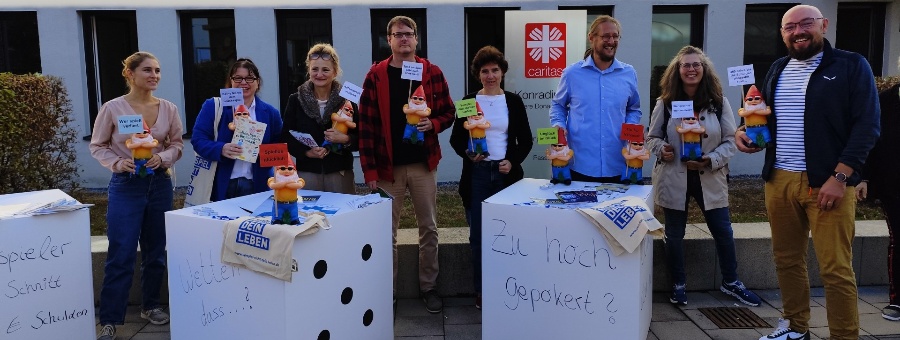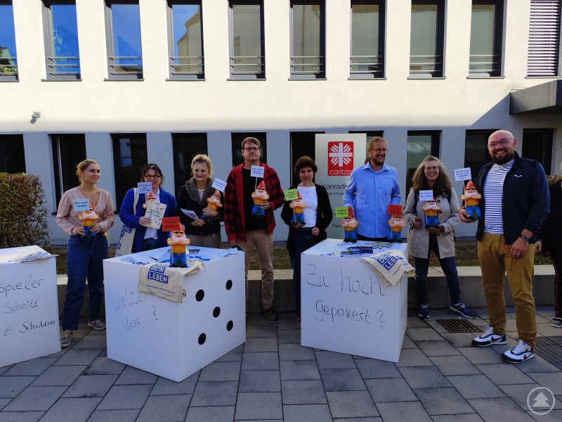 In Passau haben Mitarbeitende der PSBB am Aktionstag mit einem Banner, überdimensionierten Würfeln und Gartenzwergen auf die Gefahren von Glücksspielen hingewiesen. Klaas Spettmann, Suchtberater beim Caritasverband für die Diözese Passau e. V., erklärt: „Das aktuelle Sportwettenangebot erlaubt Wetten rund um die Uhr und bequem vom Smartphone aus. Besonders Live-Wetten während der Sportereignisse verstärken den Reiz, da sie jederzeit angepasst werden können. So intensiviert sich das Wetterlebnis, und damit steigen auch die Risiken, ein problematisches Glücksspielverhalten zu entwickeln.“