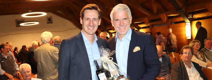 Der CSU-Ortsvorsitzende Dr. Stefan Brücklmayer bedankte sich am Ende bei Steffen Vogel mit einem Präsentkorb für „sehr viele Informationen mit einem guten Schuss Humor“.
