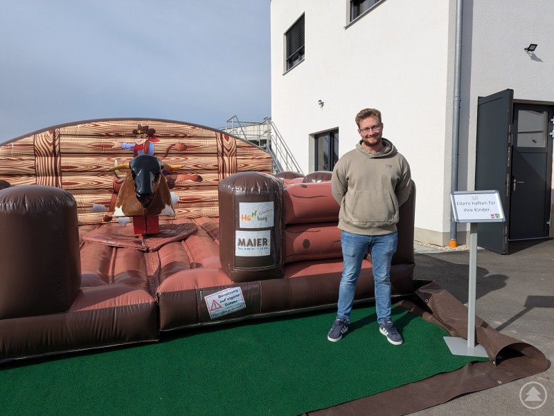 Jedoch war beim Tag der offenen Kläranlage in Metten nicht nur das Interesse an den Führungen groß. Das fair bepreiste Angebot an Speisen und Getränken kam ebenfalls gut an. Auch die musikalische Umrahmung des Fests durch die Blaskapelle Winkling war hörbar gelungen. In Kombination mit dem sonnigen Wetter nutzen viele Gäste die Gelegenheit, um es sich auf den Sitzbänken im und vor dem Bierzelt gemütlich zu machen. Wer Lust hatte, konnte sich zudem am Bull-Riding versuchen. Für die kleinen Gäste war außerdem noch eine Hüpfburg aufgebaut.
