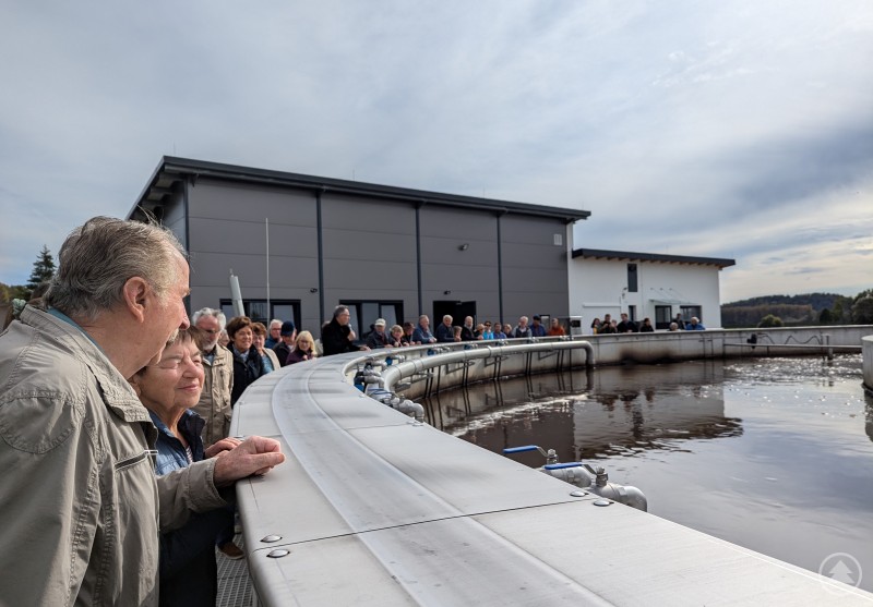 Mehrmals täglich konnte die Kläranlage im Rahmen von kostenlosen Führungen erkundet werden. Geleitet wurden sie zum Beispiel von Andreas Moser, dem Bürgermeister von Metten und Berg. Auch Hans-Jürgen Fischer, der Erste Bürgermeister von Offenberg, führte die zahlreichen Gäste durch die generalsanierte Kläranlage. Dabei fiel schon beim Warten auf die nächste Besichtigung auf, dass das Interesse an der Einrichtung enorm war. Immer wieder bildete sich eine beachtliche Menschentraube am Startpunkt zur Führung. Sie wartete darauf, gemeinsam dem Weg des Abwassers zu folgen.