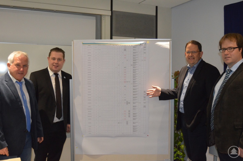 Markus Wessel (2. v. rechts) erläuterte Regionalmanager Stephan Lang (rechts), ARBERLAND REGio GmbH-Geschäftsführer Herbert Unnasch und Landrat Michael Adam (von links) den Ist-Zustand bezüglich der Gewerbeflächen.