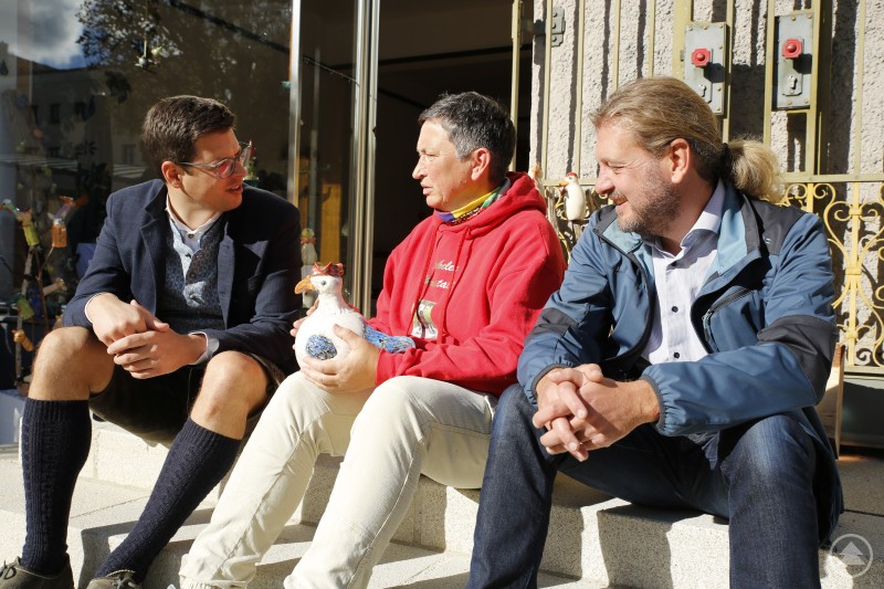 Bürgermeister Martin Pichler (l.) schaute zum Erntedankfest bei Hanne Juhre vorbei. Auch Hausbesitzer Bernd Köck wünschte bei der Gelegenheit ein herzliches Willkommen.