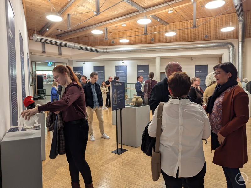 Neben reichlich Nahrung fürs Gehirn lockte die Eröffnungsfeier mit einem liebevoll angerichteten Buffet und spritzigen Getränken. Sie konnte man sich direkt neben der Sonderausstellung im Erdgeschoss schmecken lassen. Für sichtlich zufriedene Gesichter sorgten sie dabei alle: Rund um das Buffet ergaben sich inspirierte Gespräche, während die Sonderausstellung zum Staunen anregte. Und dieses Staunen schließt im archäologischen Museum von Künzing alle Sinne mit ein.