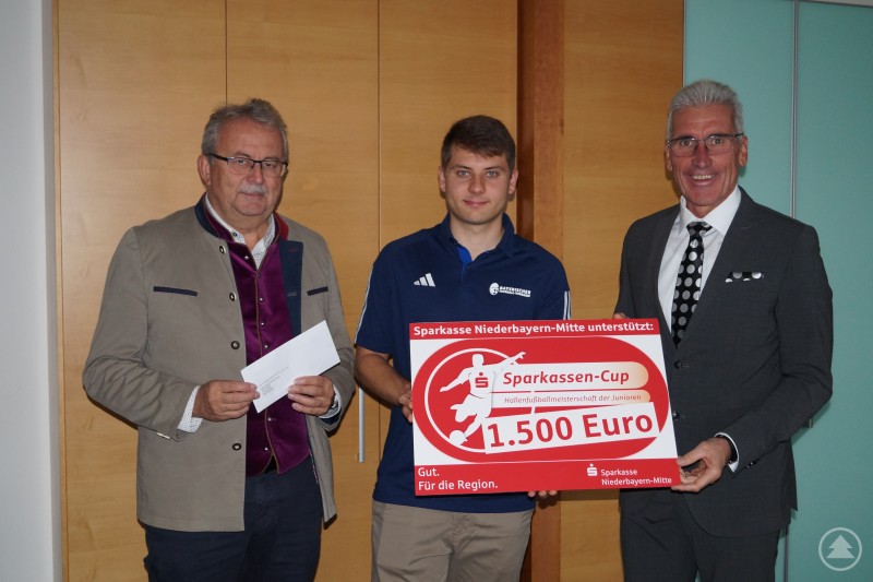 „Wir sind gerne wieder dabei“, betonte Direktor Walter Strohmaier, Vorstandsvorsitzender der Sparkasse Niederbayern-Mitte anlässlich der Spendenübergabe im Landratsamt zum Start der Hallenturniere. Walter Strohmaier übergab dabei einen zweckgebundenen Scheck über 1.500 Euro an den Landkreis Straubing-Bogen in Person von Landrat Josef Laumer. Mit diesem Geld werden