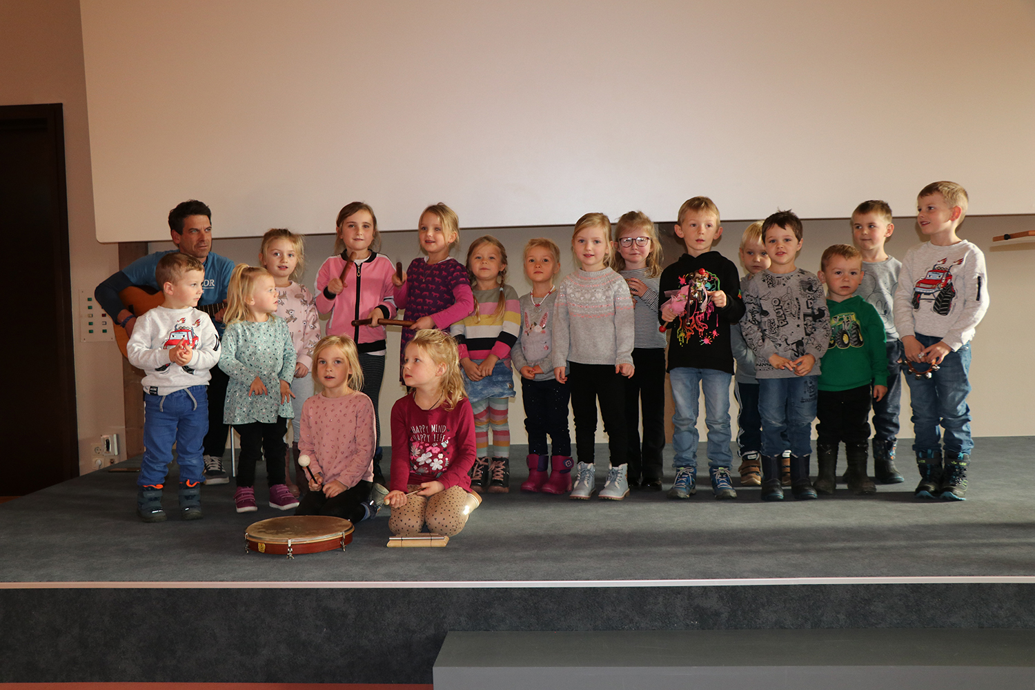 Mit dem Lied „Im Wald, das ist was los“ stimmten die Kinder des Kindergartens St. Oswald auf den Nachmittag ein.