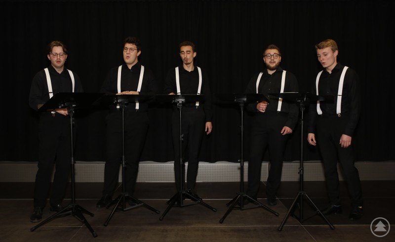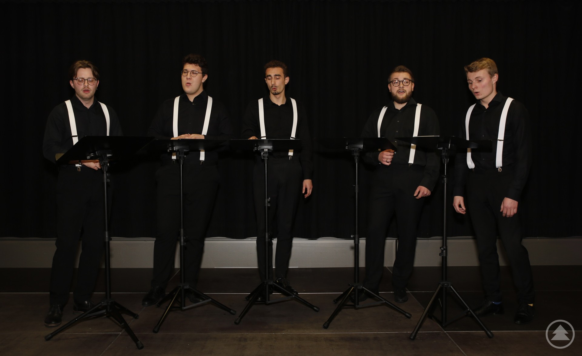 Tenor Julius Webela (v.l.), Bariton Constantin Brandscherdt, Bass Leonhard Pernpeintner, Bassbariton Johannes Lipka und Tenor Thomas Pöschl beherrschten die ganze Bandbreite der Freude mit Harmonien.