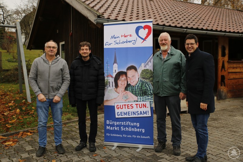 Stiftungsrat Herbert Ranzinger, Pfarrer Simon Steinbauer, Dorfgemeinschaftsvorsitzender Andreas Jobst und Bürgermeister Martin Pichler erinnerten zum Anlass einer großzügigen Erbschaft durch Gerhard Finkhaus daran, dass über die Bürgerstiftung verschiedene soziale oder kulturelle Zwecke unterstützt werden.