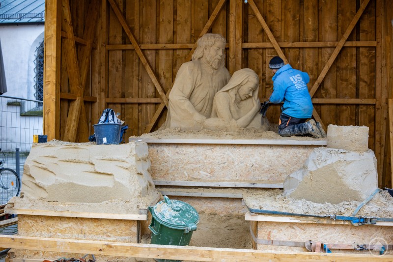Am 15. November 2024 wurde der Sand für Deutschlands größte Sandkrippe in Deggendorf angeliefert. Noch am selben Tag begann der Künstler Jiří Kašpar aus Prag (CZ) mit dem Bau und verdichtete den Sand mithilfe von Minibagger und Wackerstampfer in vorbereiteten Holzvorbauten. Am 18. November wurde die Holzkonstruktion der Krippe aufgebaut, und der Künstler begann mit dem Schnitzen der Figuren.