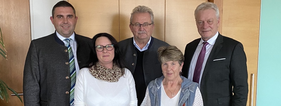 Bürgermeister Andreas Urban, Melanie Simmel, Landrat Josef Laumer, Annita Simmel, MdB Alois Rainer (von links).