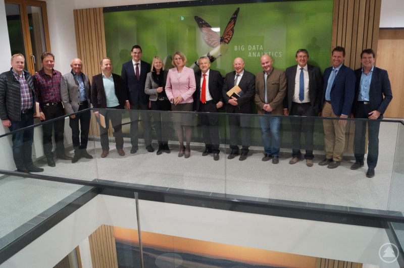 Von links nach rechts: Mario Dumps - DUMPS electronic, Karl Wirkert - Die Schmalzler, Eduard Hable, Dr. Siegfried Schmidbauer - Rosenium GmbH, Landrat Sebastian Gruber, Elisabeth Hintermann - Bettenhaus Mühldorfer, Prof. Dr. Diane Ahrens - TC Grafenau, Günther Karl sen. - Karl Gruppe, Hermann Löffler, Wolfgang Königseder - Königseder Automation, Franz Wilhelm - TC Grafenau, Büroleiter des Landrats Ralph Heinrich und Arthur Winkler - Supply Chain Services AG.