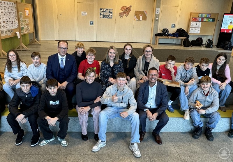 Spontan lud Bürgermeister Heinz Pollak die Ministerin zum Besuch der Emerenz-Meier-Mittelschule ein. Bei dem überraschenden Besuch traf Anna Stolz eine Gruppe von Schülerinnen und Schülern, die sich gerade zum gemeinsamen Mittagessen in der Aula niedergelassen hatten. In lockerer Atmosphäre kam sie mit den Kindern ins Gespräch und tauschte sich mit Schulleiterin Marita Schiller über die Herausforderungen und Erfolge der Mittelschule aus.