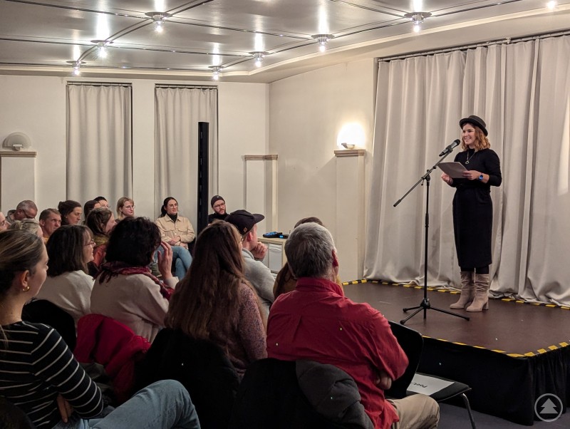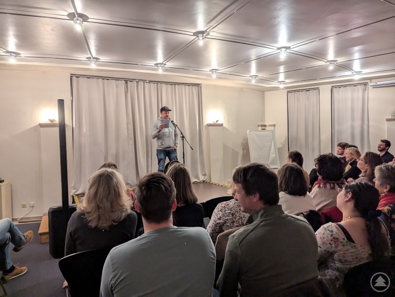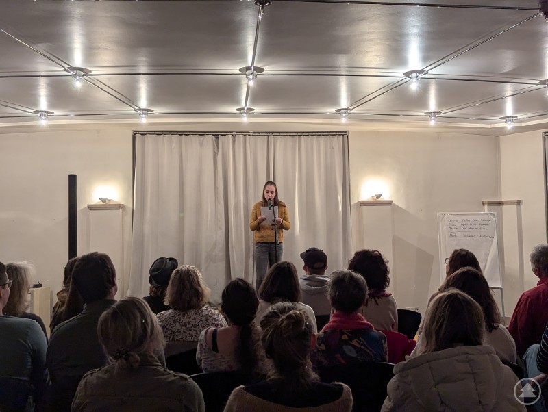 2024 gab es darüber hinaus noch einige Programmpunkte mehr, auf die man sich freuen konnte. Die Stadtbibliothek Deggendorf feierte nämlich ihr 70-jähriges Jubiläum mit einer Festwoche vom 17. bis zum 23. November 2024. Den krönenden Abschluss dieser Feierlichkeiten bildete der Poetry Slam am Samstag, 23. November. Er fand ab 19:00 Uhr im Saal oben statt, und wurde von der bekannten Slammerin, Autorin und Deggendorfer Kulturpreisträgerin Maja Schmatz gestaltet. Sie moderierte den kurzweiligen Abend  und kümmerte sich im Vorfeld um die Anmeldung der insgesamt sechs teilnehmenden Poetinnen und Poeten.