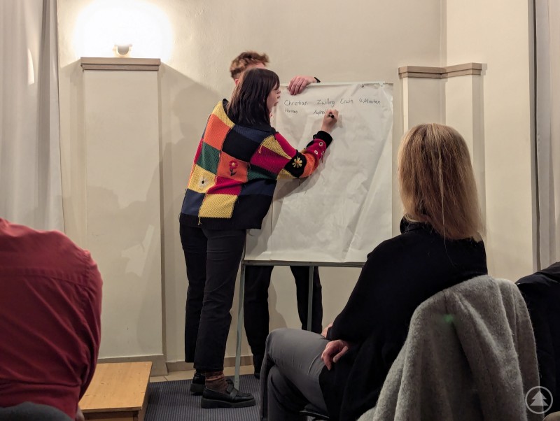 Die sechs Teilnehmenden wurden gleich zu Beginn in zwei Runden mit je drei Personen eingeteilt. Wie gut oder weniger gut ein Beitrag beim Publikum ankam, wurde direkt durch seinen Applaus bestimmt. Es galt: Je mehr Applaus es gab, desto mehr gefiel das Werk. Außerdem hielt die Deggendorfer Kulturpreisträgerin jeden Namen inklusive drei Schlüsselwörter auf einem Flipchart fest. Das diente als zusätzliche Gedächtnisstütze. Dennoch: