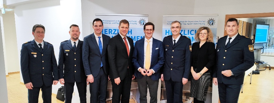 Mit der offiziellen Einweihung samt kirchlicher Segnung wurde das Fortbildungs- und Tagungszentrums der Bayerischen Polizei (FTZ) in Freyung vergangene Woche im Beisein von Ministerpräsident Dr. Markus Söder, Innenminister Joachim Herrmann und Bauminister Christian Bernreiter seiner Bestimmung übergeben. Auf Initiative des örtlichen Stimmkreisabgeordneten Dr. Stefan Ebner fand im Nachgang der Einweihung ein "Runder Tisch" mit den zentralen polizeilichen, ministeriellen und politischen Akteuren, die am weiteren Aufbau der Einrichtung maßgeblich beteiligt sind, statt. Als gemeinsames Ziel definierte die Runde eine möglichst zügige Umsetzung der baulichen Maßnahmen, die für die Aufnahme des mehrtägigen Seminarbetriebs erforderlich sind.